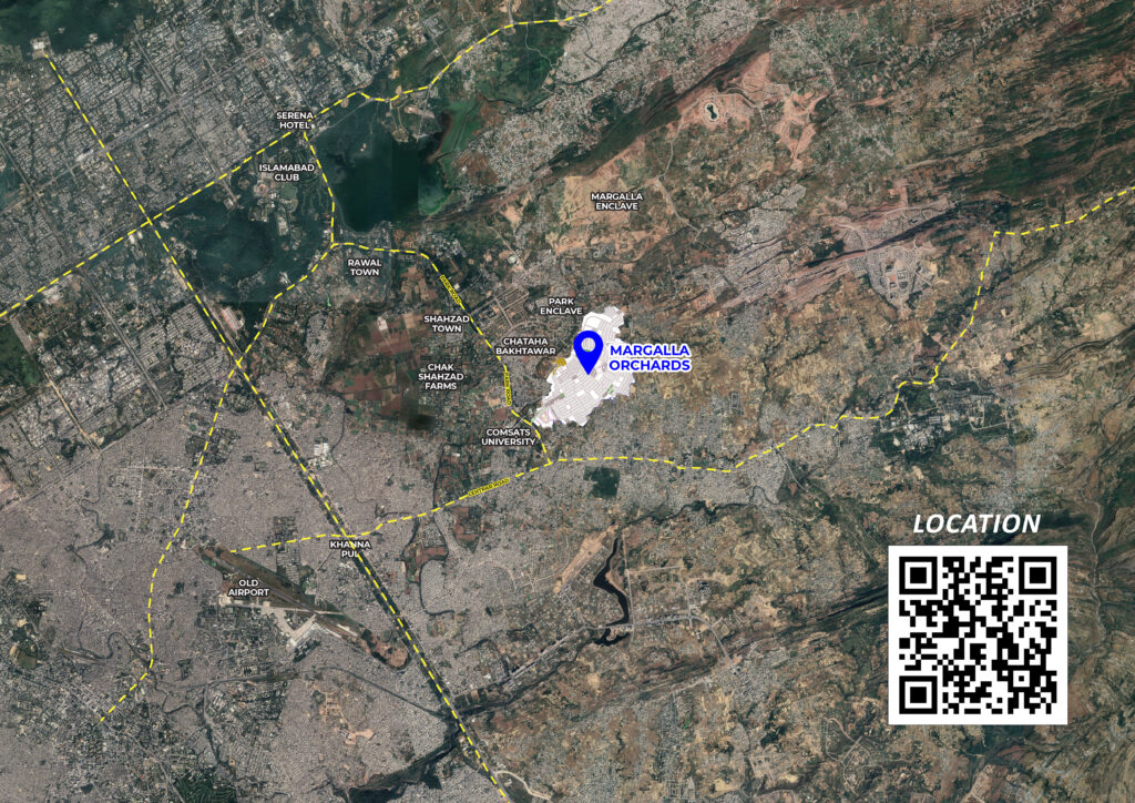 Margalla Orchards is a prestigious master‑planned housing society located on Main Park Road, Islamabad — directly opposite COMSATS University and a short drive from Islamabad’s major landmarks and highways.